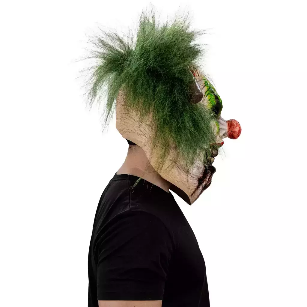 Con su cuchillo en la cabeza, ojos desquiciados y sonrisa macabra, esta máscara hará temblar a todos. Perfecta para Halloween y cosplay, artesanal y única por Ghoulish Productions.